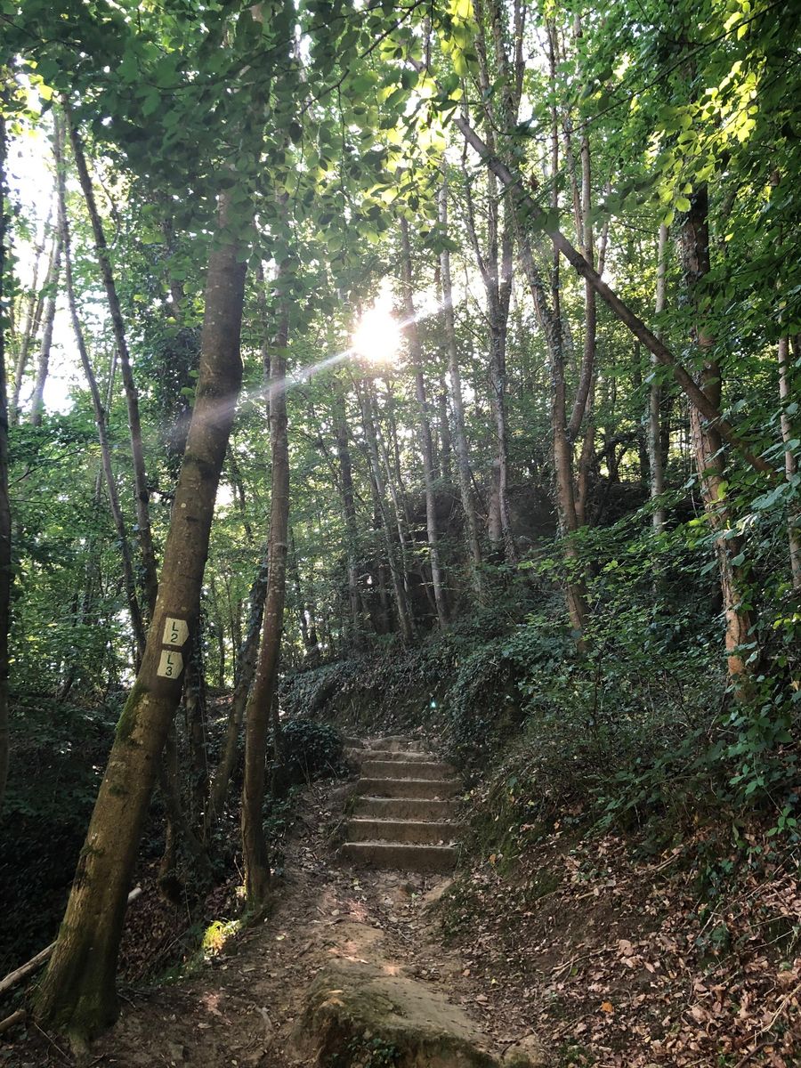 Leisurely hike without much ascent, mainly through the forest, passing Meysemburg Castle and back to Larochette with a great view of the castle.