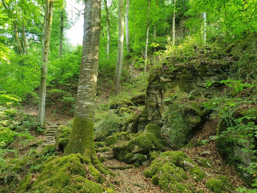 Mullerthal Trail Route 1: through enchanting forests with impressive rock landscapes along blooming orchard meadows and great views into the Sauer valley.