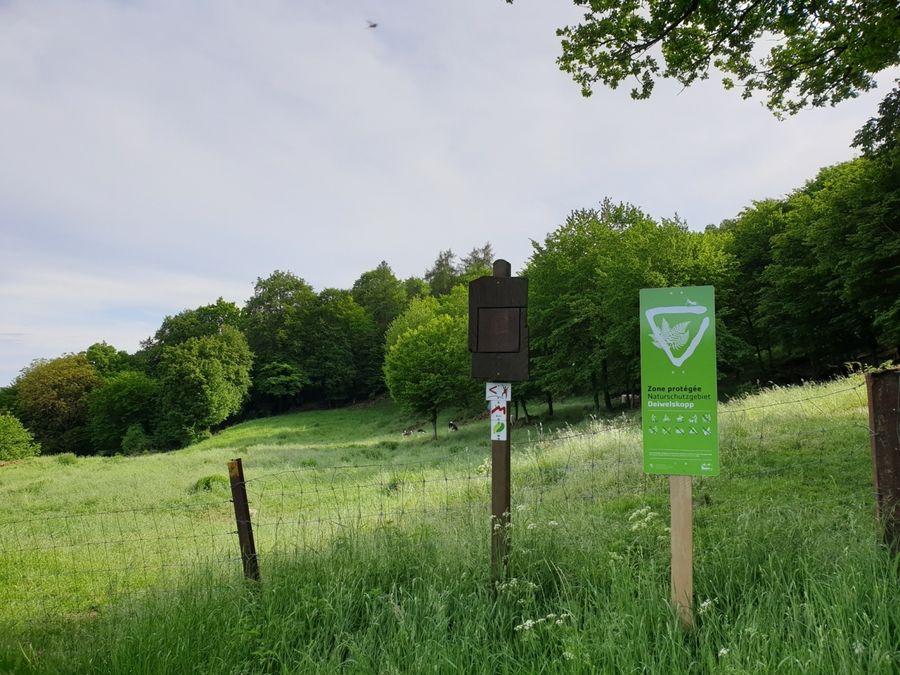 Through open landscapes and small sections of forest, the Mullerthal Trail then continues above the village of Born towards Moersdorf. On this section, you hike through fields and meadows and can enjoy wonderful views of the Sauer valley. In Born and Moersdorf there are places to stop for refreshments.