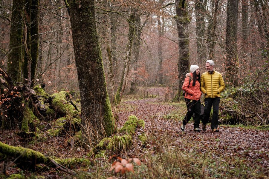 On the hike towards Untersauer, the path initially runs along the Sauer, the border river to Germany, then shortly after Echternach turns right into the forest. The route first passes through woodland, past impressive rock formations. Above the village of Steinheim, you enter open meadows with beautiful views of the valley before the path leads into an enchanting forest section again before the next village (Rosport). In Rosport, the Mullerthal Trail runs directly past the Tudor Castle, which invites visitors to tour the museum housed there. There are places to rest both in Steinheim and Rosport.